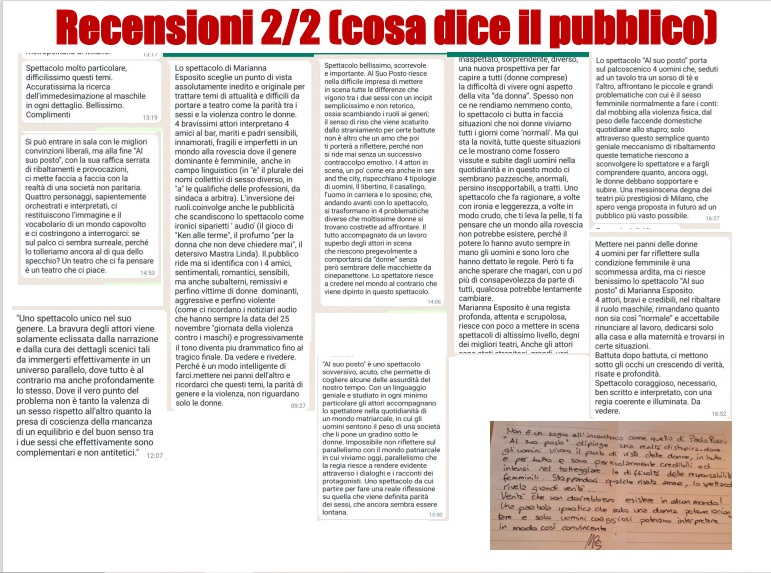 Sinora gli spettacoli sulla violenza di genere godevano di fruizione esclusivamente di pubblico femminile. Questo progetto, per sua stessa essenza, coinvolge anche quello maschile.